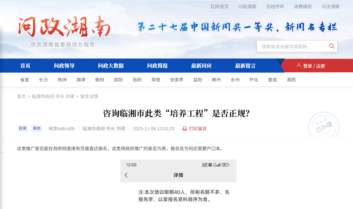 红(hong)网时候新闻11月10日讯(记(ji)者(zhe) 翁子茜(qian))近日,“网友(you)ktdcu0b”经过红(hong)网《问政湖南》栏目征询,岳阳市(shi)临湘总工会联合培训机构(gou)开展的“AI野生智(zhi)能培训班”是不是正规,并对报名需(xu)要提供户口本等质料(liao)提出疑问。岳阳市(shi)临湘总工会回(hui)应称,培训根据上(shang)级文件请(qing)求构(gou)造,内容属实,需(xu)户口本复印件是出于培训档案管理需(xu)要。